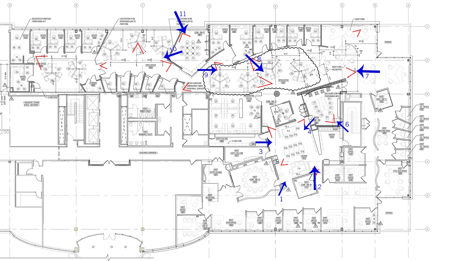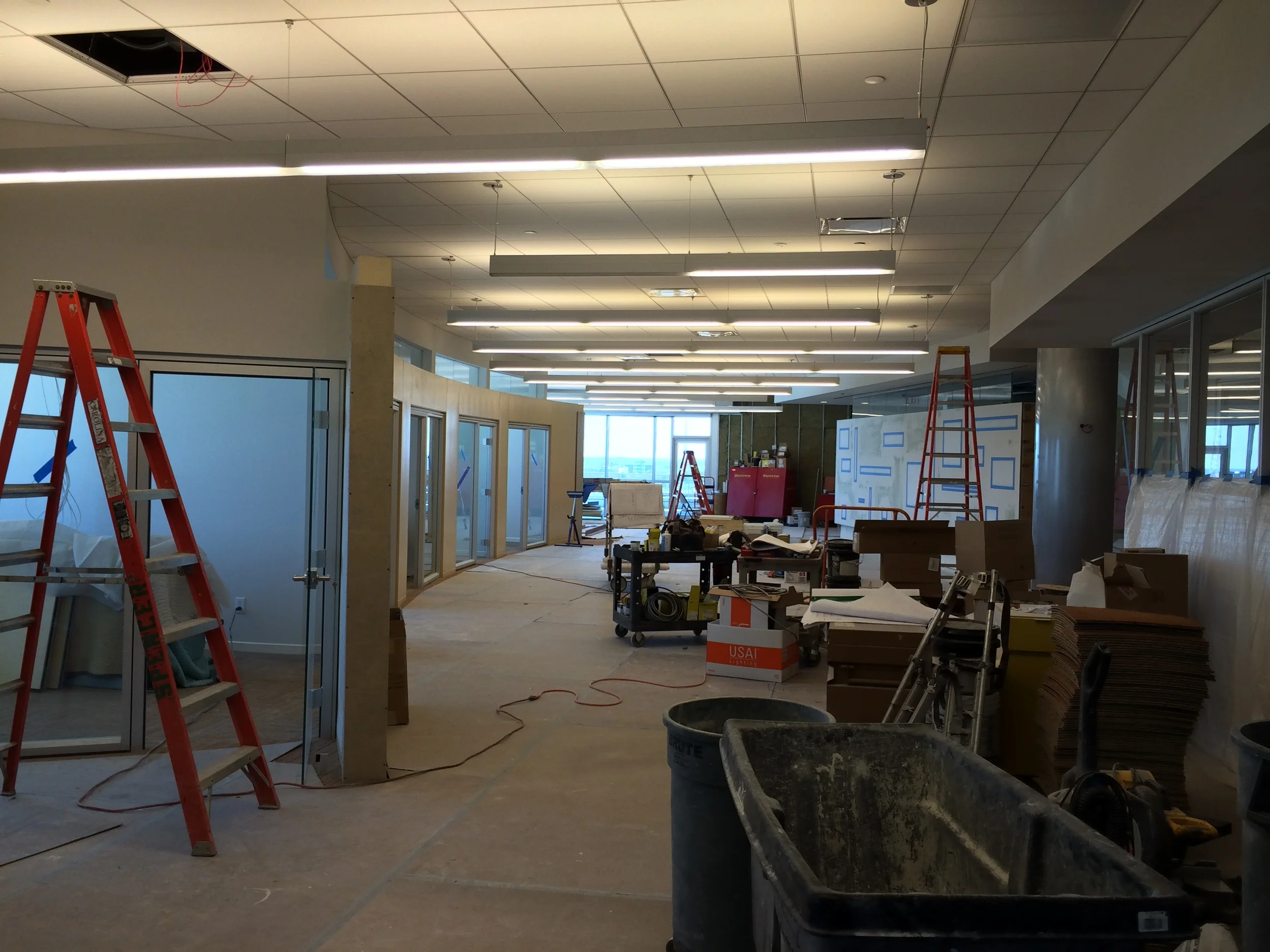 Later that week I got a drop box with project information and in-construction photos. I reviewed everything, including my images of phase one, and visualized walking through the office.